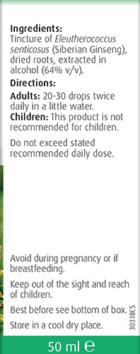 Tincture of Eleutherococcus senticosus (Siberian Ginseng) dried roots, extracted in alcohol (64% v/v)