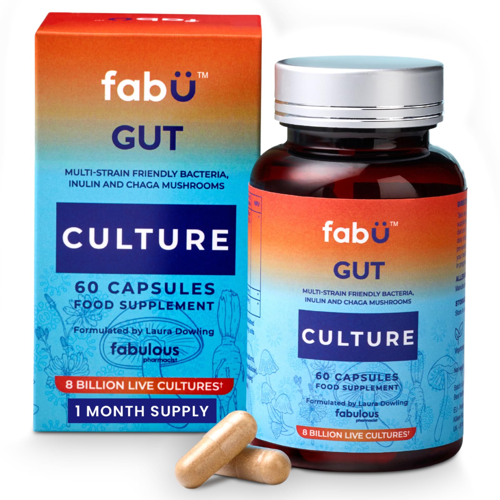 Functional mushroom and probiotic blend to support gut health, digestion, and immune balance! fabÜ GUT CULTURE is a targeted gut health supplement formulated by pharmacist Laura Dowling. It combines lion’s mane mushroom, live cultures, and prebiotic fibre with essential B vitamins to support digestive comfort, microbiome balance, and overall wellbeing.