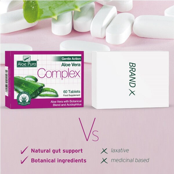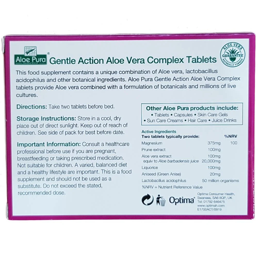 Gentle, Plant-Based Formula for Digestive Comfort! Aloe Pura Gentle Action Aloe Vera Complex 60 tablets combines certified organic aloe vera with a synergistic blend of botanicals and live cultures to support healthy digestion and bowel regularity. This non-irritating formula is designed to soothe the digestive tract and promote gut balance, making it ideal for those seeking natural digestive support.