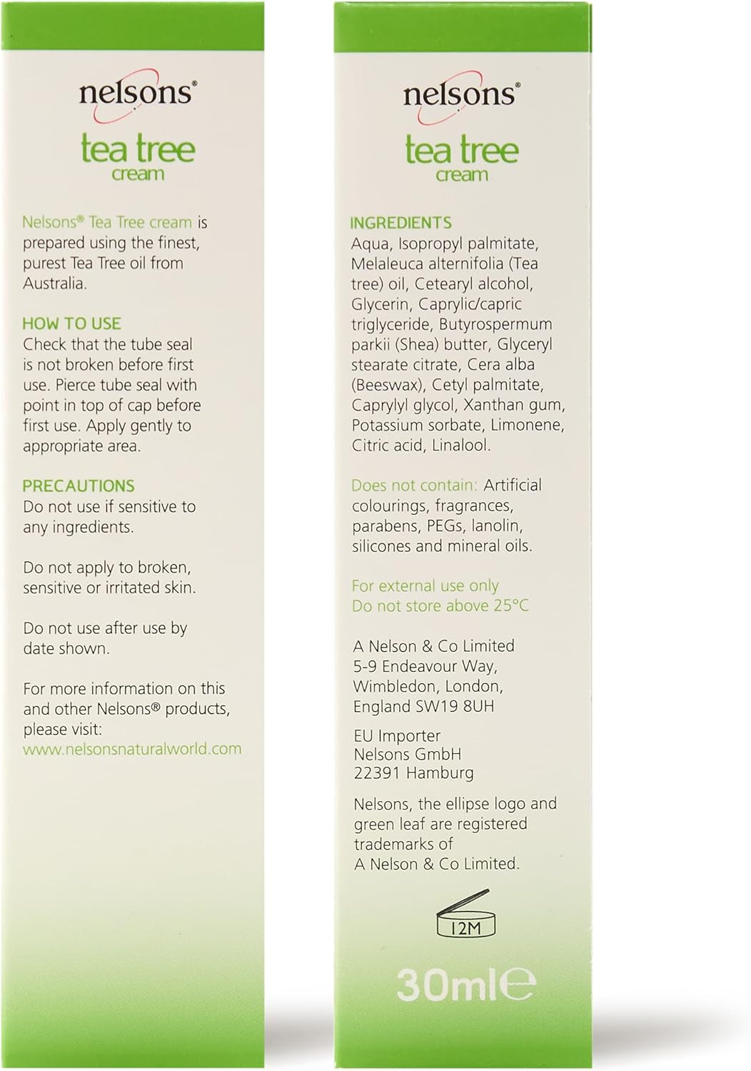 Natural Antiseptic Care for Skin Wellness! Nelsons Tea Tree Cream is a multi-purpose, non-greasy topical cream made with the finest, purest tea tree oil sourced from Australia. Known for its powerful antiseptic and soothing properties, this cream is ideal for treating minor skin irritations, blemishes, and insect bites. Suitable for the whole family, it’s free from harsh additives and designed for gentle, effective care.