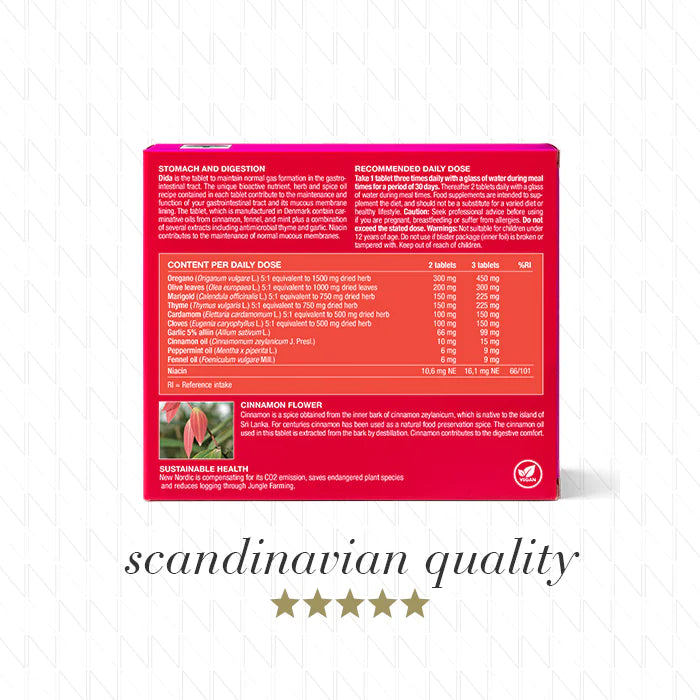 Herbal and spice complex for gut balance and digestive comfort! New Nordic Dida is a Scandinavian herbal supplement formulated to help maintain a healthy microbial balance in the digestive tract. It combines oregano, thyme, cinnamon, garlic, and other botanicals traditionally used to support gastrointestinal comfort and reduce bloating, gas, and yeast overgrowth.