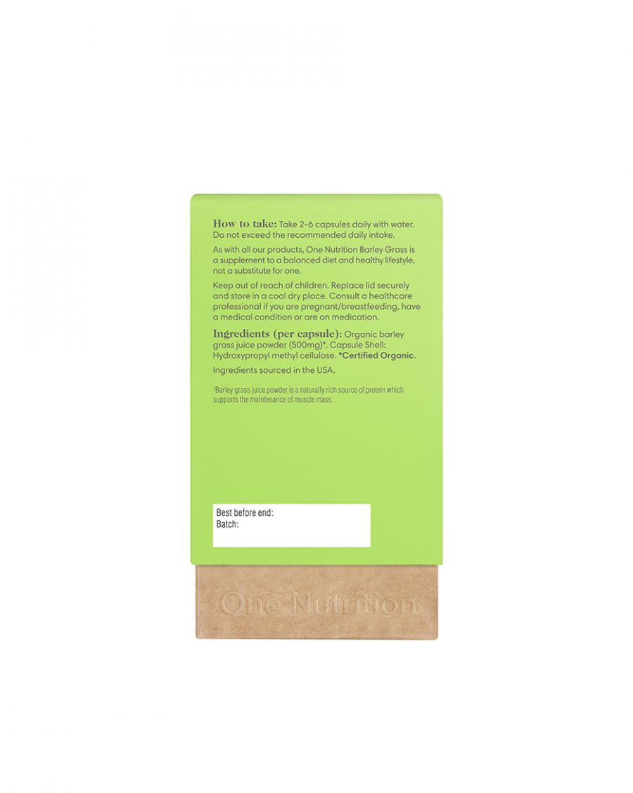 Highly Concentrated Organic Barley Grass Juice for Alkalising & Nutrient Support! One Nutrition Organic Barley Grass Juice Capsules are made from 100% organic, field-grown barley grass leaves that are juiced and then powdered to retain maximum nutrient density. These capsules provide comprehensive nutritional support in a convenient form.