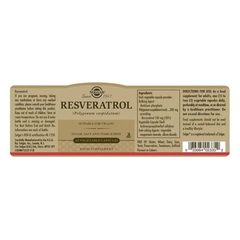 Plant-Based Antioxidant for Heart, Skin & Cellular Health! Solgar Resveratrol 100mg delivers a potent dose of natural polyphenols sourced from Japanese Knotweed (Polygonum cuspidatum).