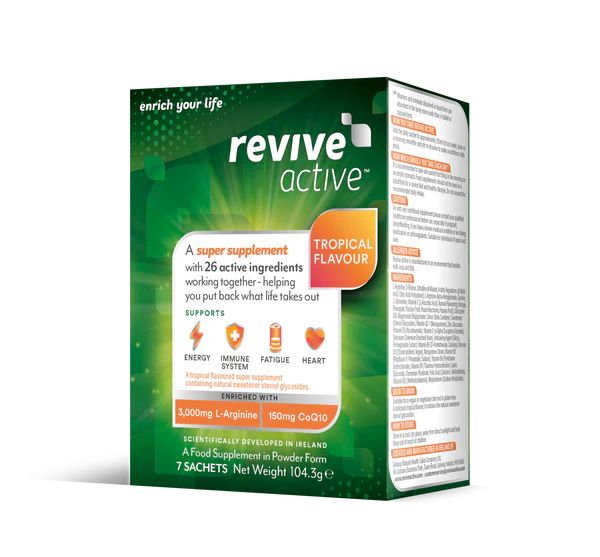 7-day trial of Revive Active’s flagship formula now in a refreshing tropical flavour! Revive Active Tropical is a compact version of the original Revive Active super supplement, designed for adults aged 30+ seeking support for energy, immunity, heart health, and cognitive function. Each sachet delivers 26 active ingredients including CoQ10, L-Arginine, and 11 essential vitamins in a tropical-flavoured powder that mixes easily with water.