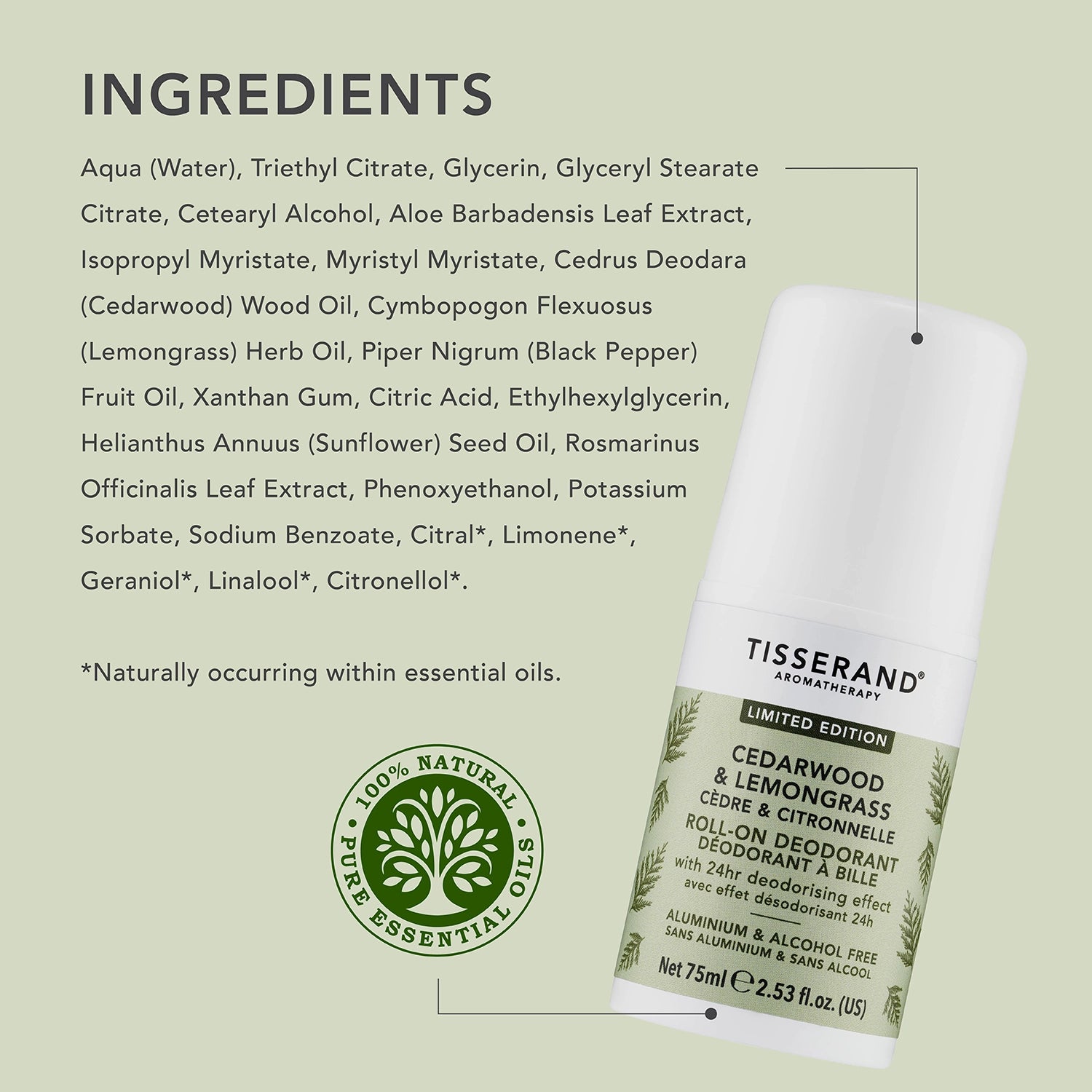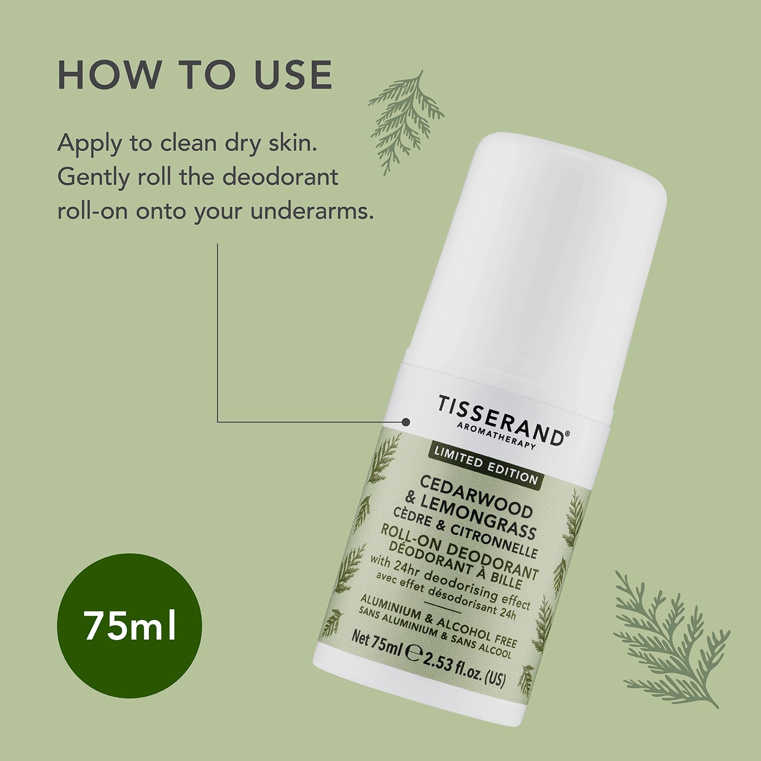 Zesty, Earthy Freshness - Natural Protection Without Aluminium! Tisserand Cedarwood & Lemongrass Deodorant 75ml offers long-lasting odour protection using a botanical blend of essential oils and plant-based ingredients. This aluminium-free roll-on deodorant neutralises odour without blocking sweat glands. Gentle enough for daily use.